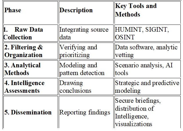 Production of Assessments: Structured intelligence reports are produced with clear recommendations for tactical or strategic decisions (Riecker, 2020).