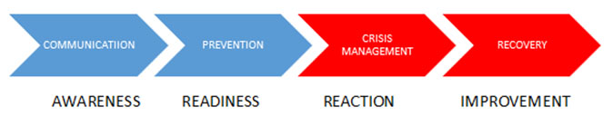 In order to enable such rapid and comprehensive reaction for recovery that makes the risk of harm acceptable, Communication among all stakeholders to ensure Awareness of CIP and Prevention measures that ensure Readiness (Figure 1) in the case of need, should be developed. Moreover, CIP awareness and readiness, as desired outputs, should be comprehensively transmitted horizontally and vertically through all stakeholders in order to enable proper Crisis Management and desired Reaction as output after Hazardous Incident occurs. Rapid Recovery processes that would follow (based on standard operating procedures) aim to stabilize the situation after the accident and should trigger suggestions for Improvements, as lessons learnt.